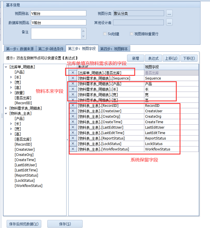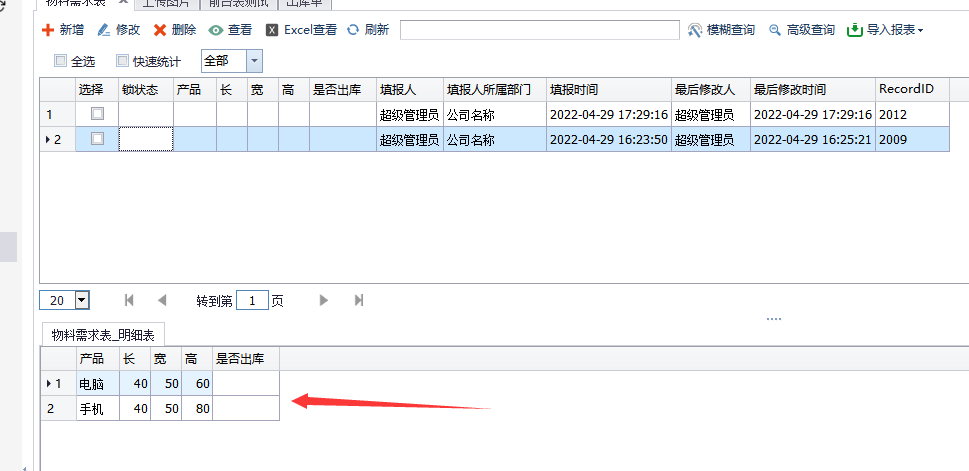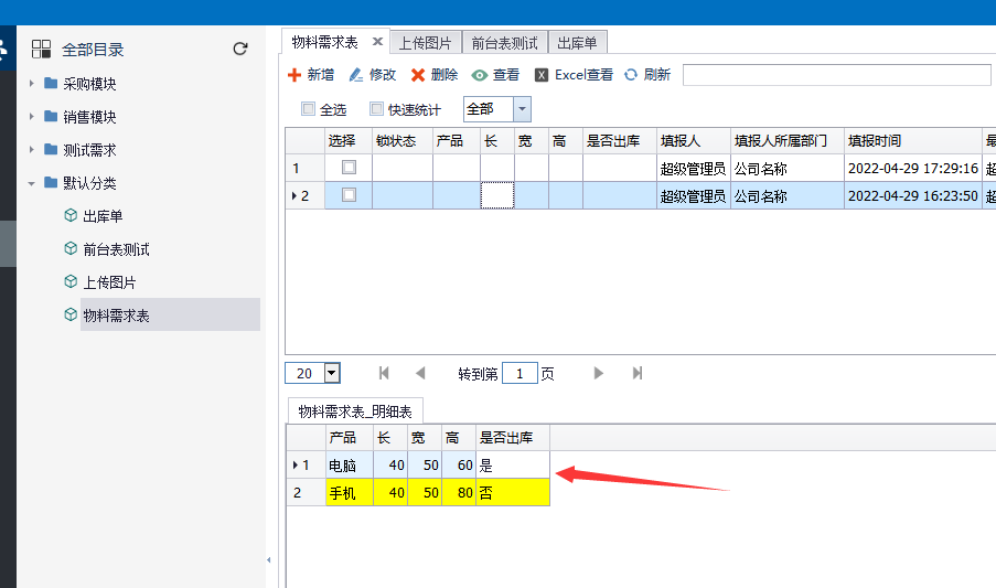 当用户将产品出库后,物料需求表中的出库状态需要改变,通常我们会用回写公式来实现,但会面临一些并发问题,如同时写数据,导致数据错误,这时我们需要借用前台表来实现。
