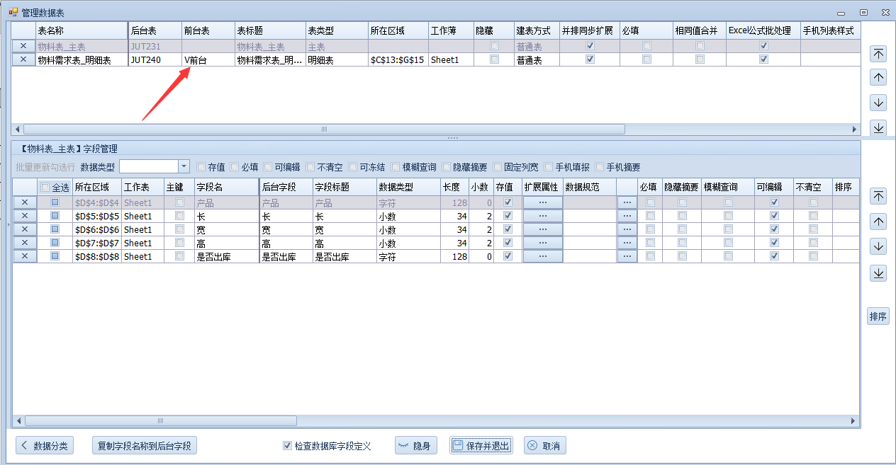 前台表是用于展示数据,和后台数据库无关。当A指定前台表为B,A中缺失的字段可以被前台表B补充,注意的是要对应起来。