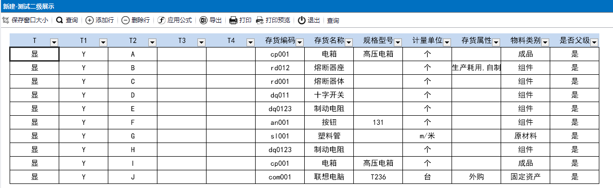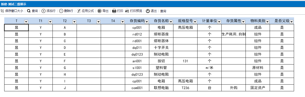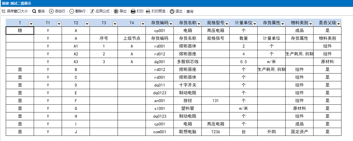 业务中为了方便清晰的查询一些数据需要用到二级甚至多级展示,示例我们需要一个二级展开查询表来查询BOM清单中的具体数据