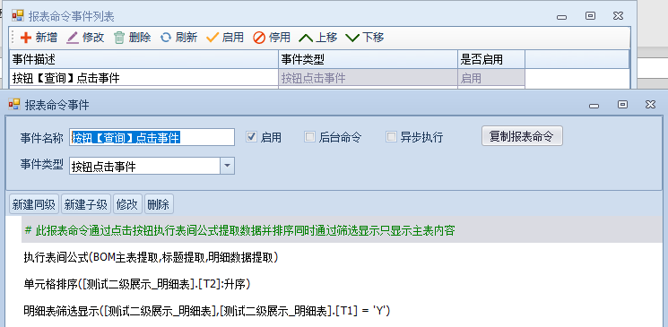 3.创建报表命令按钮执行表间公式,同时对数据进行排序