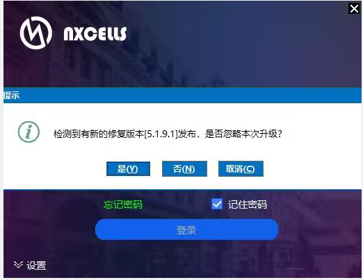 点击【是】代表忽略此次的小版本(图中 5.1.9.1)的升级,点击【否】代表升级;