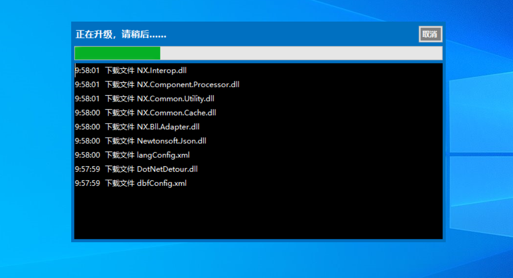 点击【确定】,则客户端开始自动从服务器下载最新的文件,完成升级。