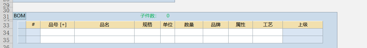 在建表单时,理清关系就很好确定是单一数据项还是明细数据项,例如在报销单中,报销人、报销日期字段就可以定义为单一数据项;报销明细的信息就可以定义为重复数据项。也如下图构建bom的时候,品名定义为重复数据项表明一个物料由多个子料来组成。