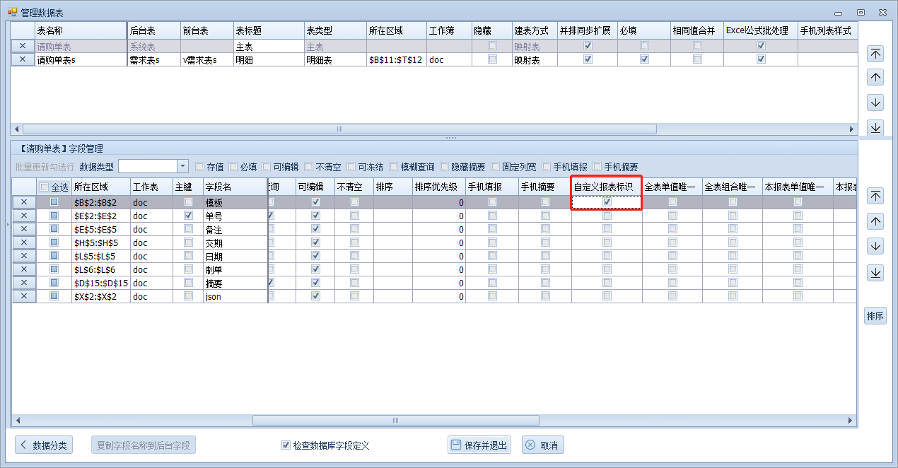 【自定义报表标识】勾选,相当于取代recordid的一种,通过字段来表示本表id