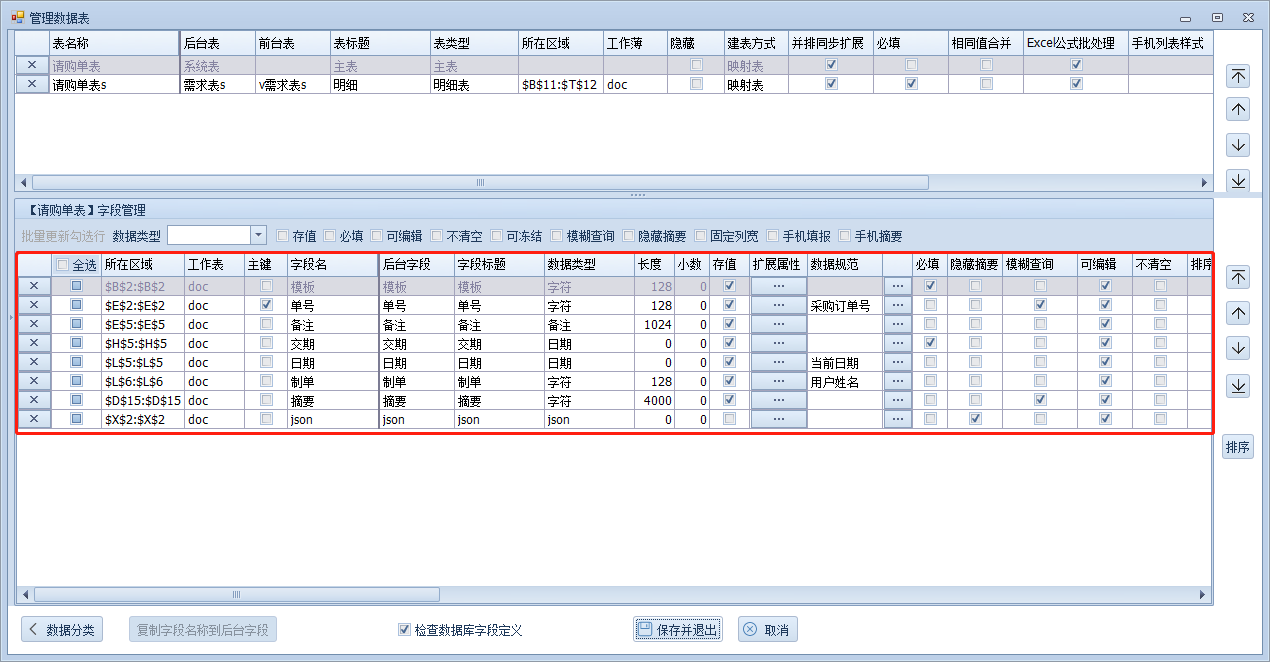 【数据规范】用于设置字段名对应数据的数据规范。设置”数据规范”会在数据规范章节说明。