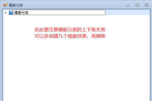 【模板分类】弹出窗口选择(如果没有,则树形中选中某分类,右键快捷菜单新增或修改分类)。