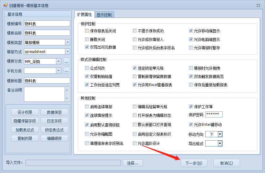 模板信息设置完毕后,点【下一步】按钮,选择要创建的表类型;