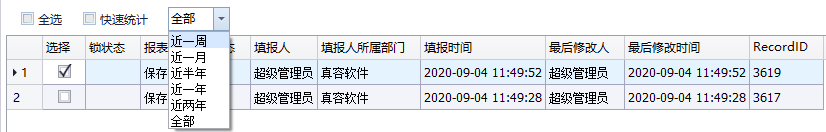 - 场景-前台表和自定义报表标识组合展示出入库情况