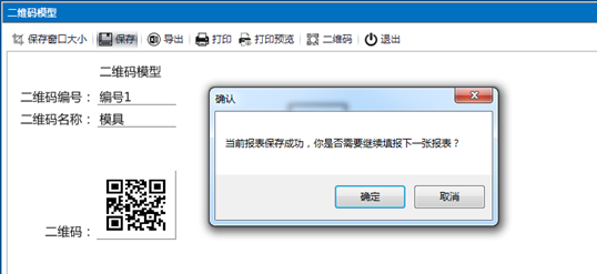 设置完毕后,测试填报《二维码模型》,保存后二维码即可生成,如下图(若想在合适时机生成二维码,即不一定非要保存时才产生,可以用报表命令生成二维码):