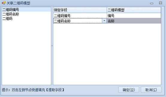 新建一个名称为二维码的模板,定义三个字段,分别为【二维码名称】,【二维码编号】,【二维码】,数据类型如下: