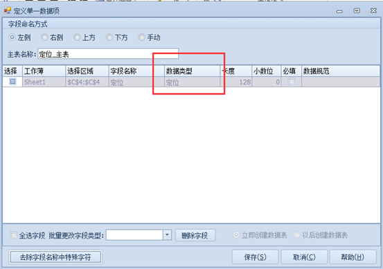 设置数据项数据类型为”定位”