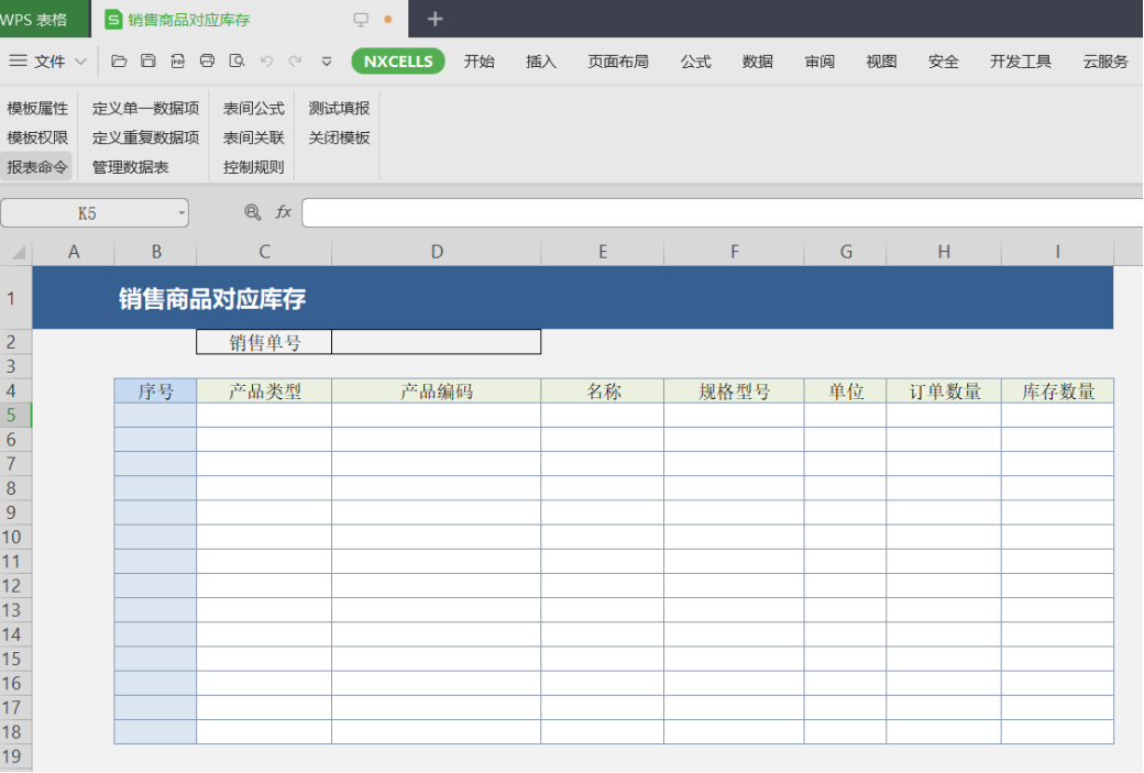现有《销售订单》,该表记录销售订单中销售商品的明细;《商品档案》,该表存储了商品的详细信息及库存数量。做一个查询模板,样式如下。输入销售订单单号后能自动出来该销售订单的商品信息明细及其的商品对应的库存数量。