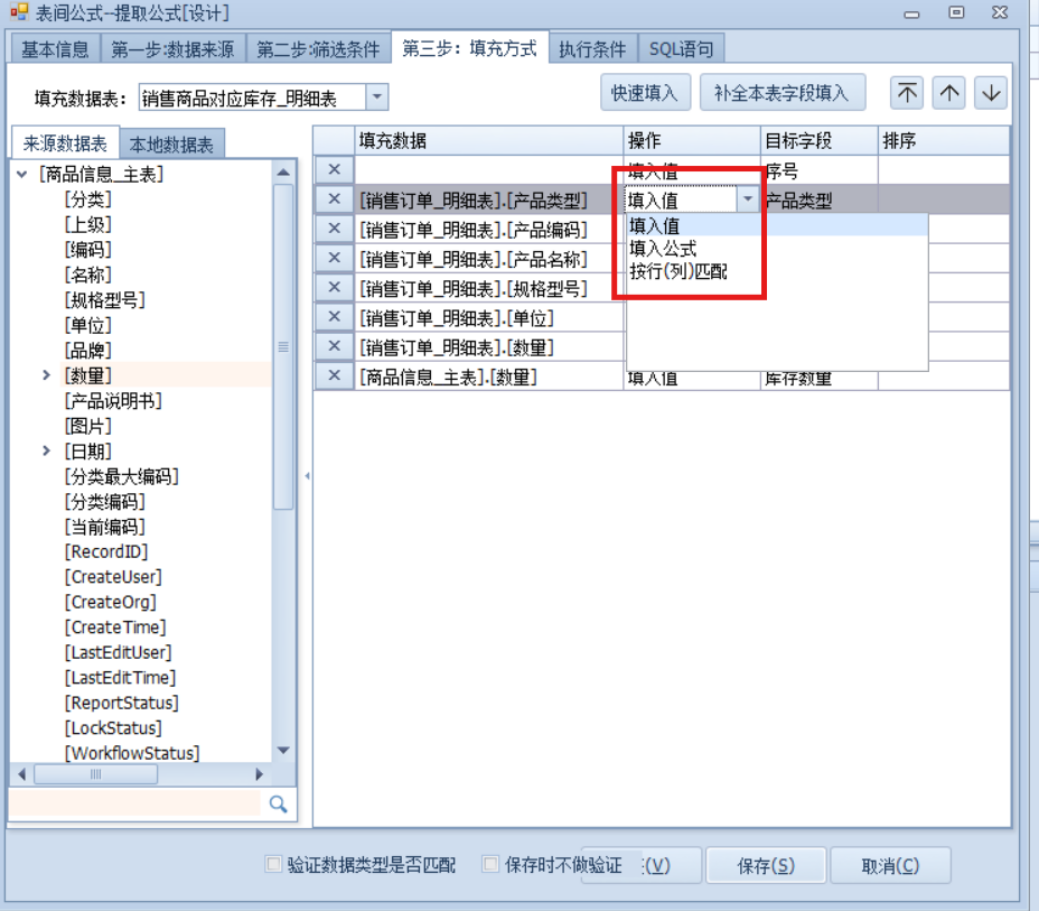 填入值:顾名思义就是将来源表里字段或者表达式的值填入到【填充数据表】的目标字段里。
