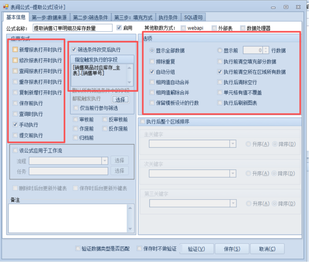 保存前执行:保存报表前执行公式