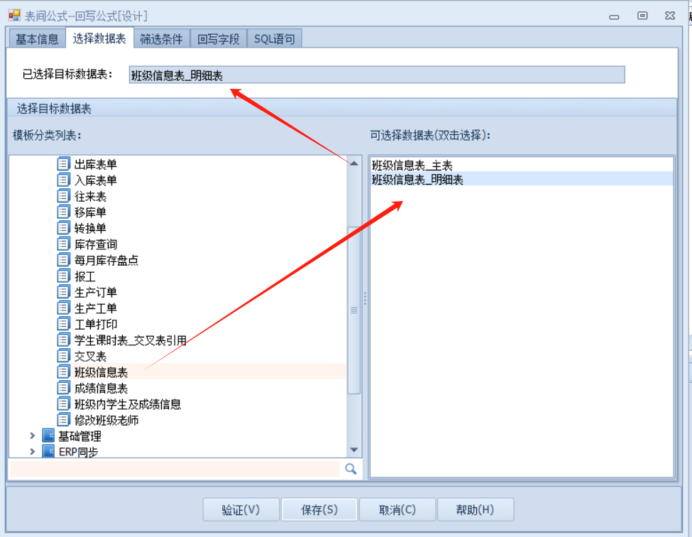 选择数据表是指我们要往哪个表里回写数据,如下图: