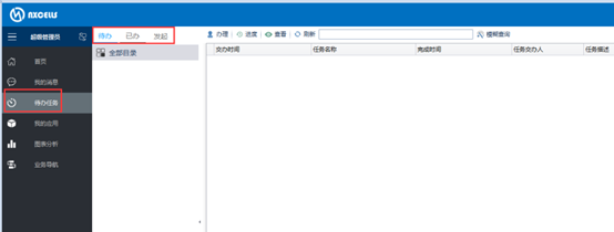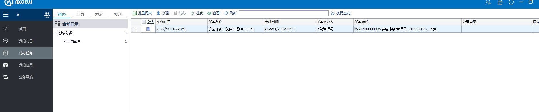 登录NxCells客户端,左侧功能菜单,点【代办任务】按钮,右侧显示流程状态几种类型: