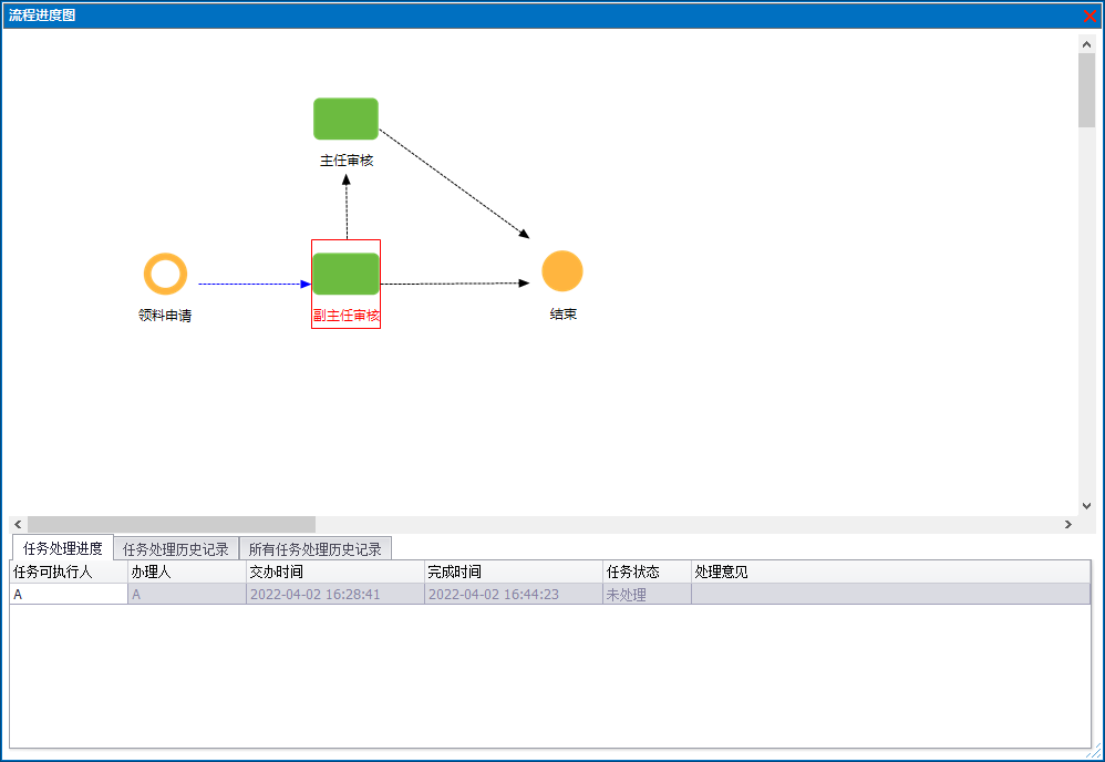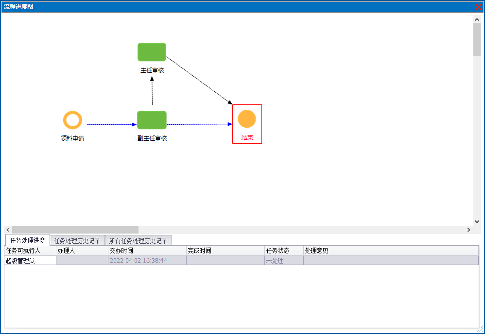 通过查看流程进度,可以看到目前流程任务节点为【班主任审批,当前办理人为班主任;