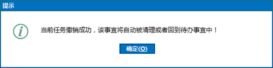 弹出窗口,提示撤销成功,点【确定】按钮,如下图: