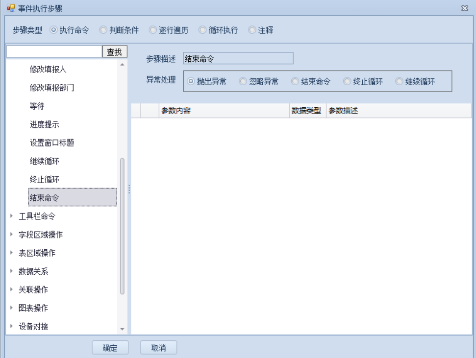 上一页 在报表命令中使用该功能后,当命令执行到了这一步,后续的所有报表命令步骤都会不再执行,直接退出命令。下一页作者:wang 创建时间:2021-11-04 14:37最后编辑:test 更新时间:2025-10-14 15:38