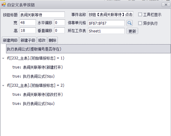 上一页 此功能一般与其他报表命令一起组合使用。即只有退出/保存表间关联(新建/修改/查阅)打开的表单后,后续报表命令才能继续使用。如下列组合报表命令:执行表间公式(tiqu)这一报表命令,必须等到表间关联(新建打开)或者表间关联(修改打开)的表单退出/保存后才会执行。 下一页作者:wang 创建时间:2021-11-04 21:50最后编辑:test 更新时间:2025-10-14 15:38