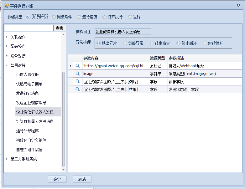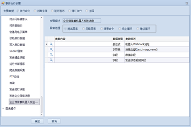 上一页 版本要求:3.5.5+ 具体设计可向真容官方沟通了解。 例如【机器人Webhook地址】需要在企业微信中建立,【消息类型】text为发送文本文件,image为发送图片;news暂不支持效果 下一页作者:wang 创建时间:2021-11-04 22:00最后编辑:test 更新时间:2025-10-14 15:38