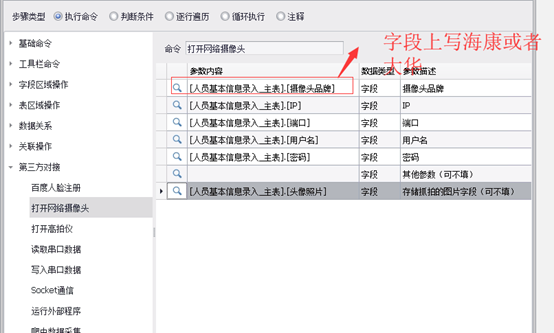 点击抓拍即可将拍到的图片存储到指定字段中。
