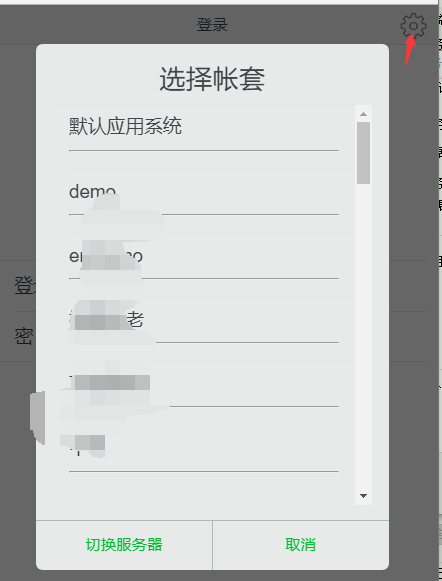 登录界面点右上角的设置图标,选择帐套,返回登录界面,如下图: