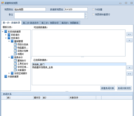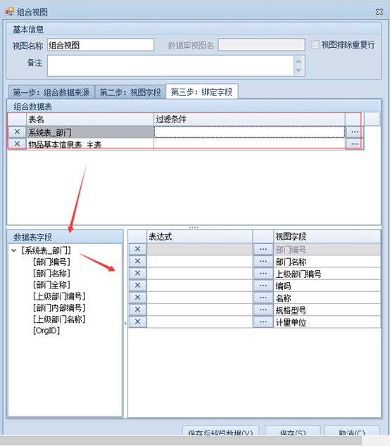 上一页 组合视图就是将多个来源数据组合起来,选定特定字段填充绑定组合而成的视图。【设计区】-【组合视图】-【新建】 选定数据来源 新增选定视图字段 绑定字段 效果展示: 下一页作者:wang 创建时间:2021-11-04 22:25最后编辑:test 更新时间:2025-10-14 15:38