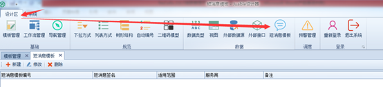 登陆设计器界面,点击【设计区】,然后点击【短消息模板】,最后点击【新建】