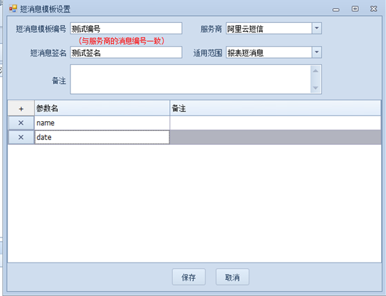 填写【短消息签名】:短消息签名与短消息模板编号相同,都需要与服务商提供的一致;