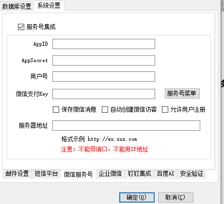 弹出业务系统配置界面,点【系统设置】,勾选【微信集成】