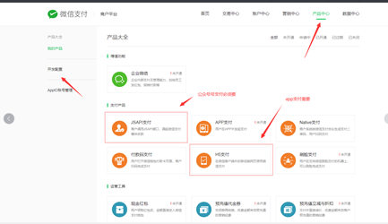微信支付申请好后需要申请对应的支付模块(如只需要公众号内支付,只需开通jsapi支付模块!如还希望支持app或手机网页端支付还需开通H5支付模块)