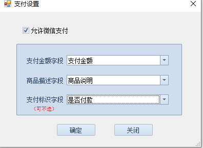 - 勾上允许微信支付,完善信息。绑定的是字段(微信支付过程中 会根据支付标识字段中的内容标识去多商户配置中找到相关信息,若找不到则为默认商户进行支付)