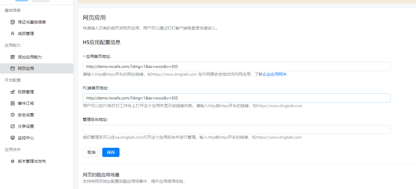 应用首页链接:http://{服务器地址带端口号}/?ding=1&ac={本地账套名}&v=305