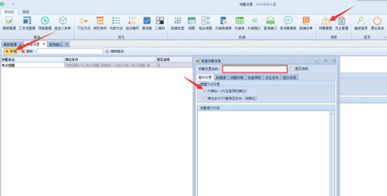 【设计端】-【设计区】-【预警管理】,如下图:
