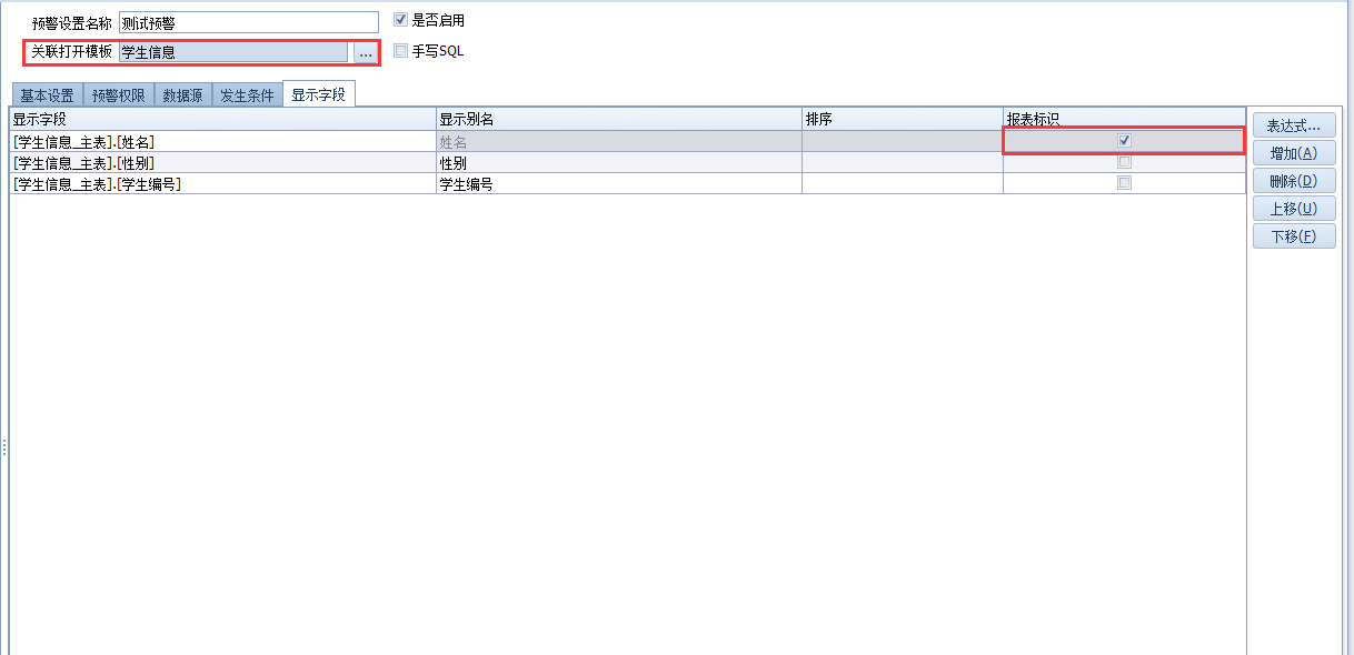 设置关联打开模板,并且勾选报表标识作为匹配项,注意这里勾选的报表标识要在该模板模板属性中开启自定义报表标识功能,管理数据表中也要勾选该字段的自定义报表标识