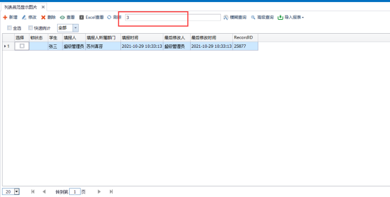 工作台总表模糊查询的时候,需要至少有俩个字段,比如主表,如果只有一个主表字段,隐藏字段,勾选模糊查询,是无法查询的。如下图: