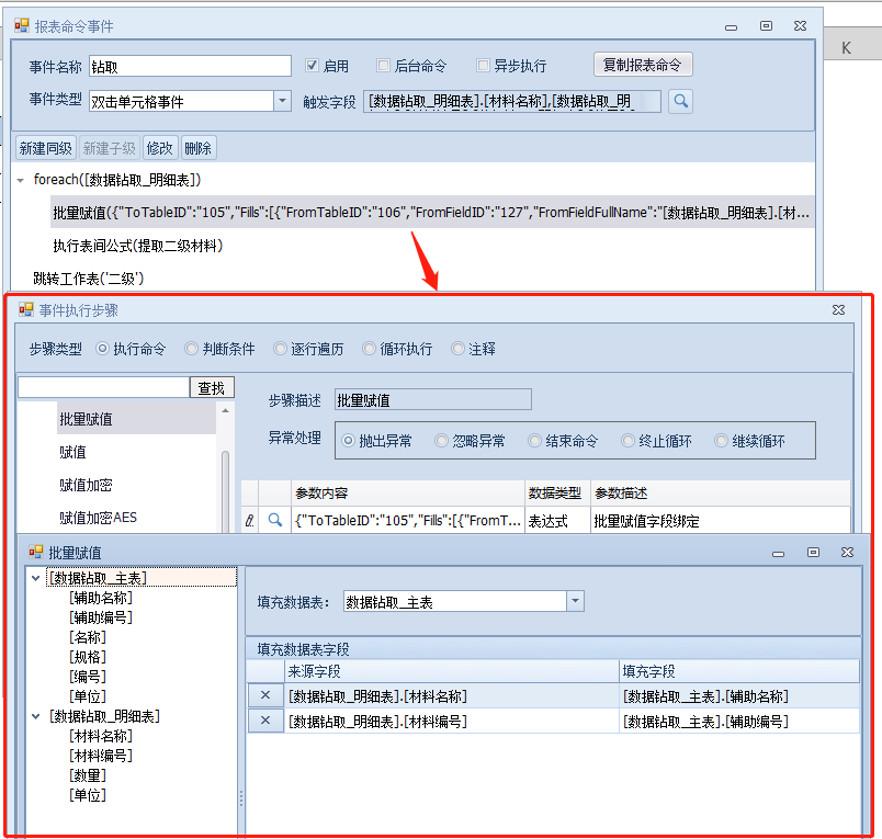 场景:在一些业务中为了方便查看数据,需要用到数据钻取的功能,例如物料bom的逐级查看,避免在工作台单独去打开表单查看,利用数据钻取,方便数据查看,这里利用一个简单的bom物料查看例子演示: