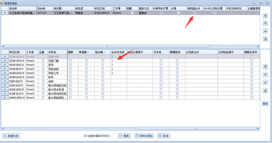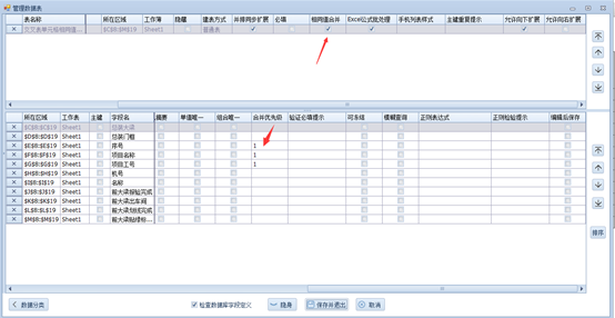实现上图我们只需要在刚刚设计好的管理数据表种把优先级设置一下即可如下图,我们看到合并优先级会有1和2,这里代表的是合并相同值的先后顺序1>2