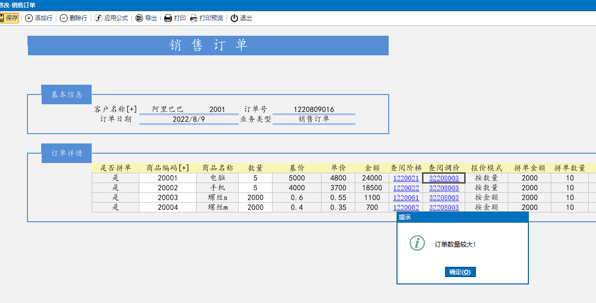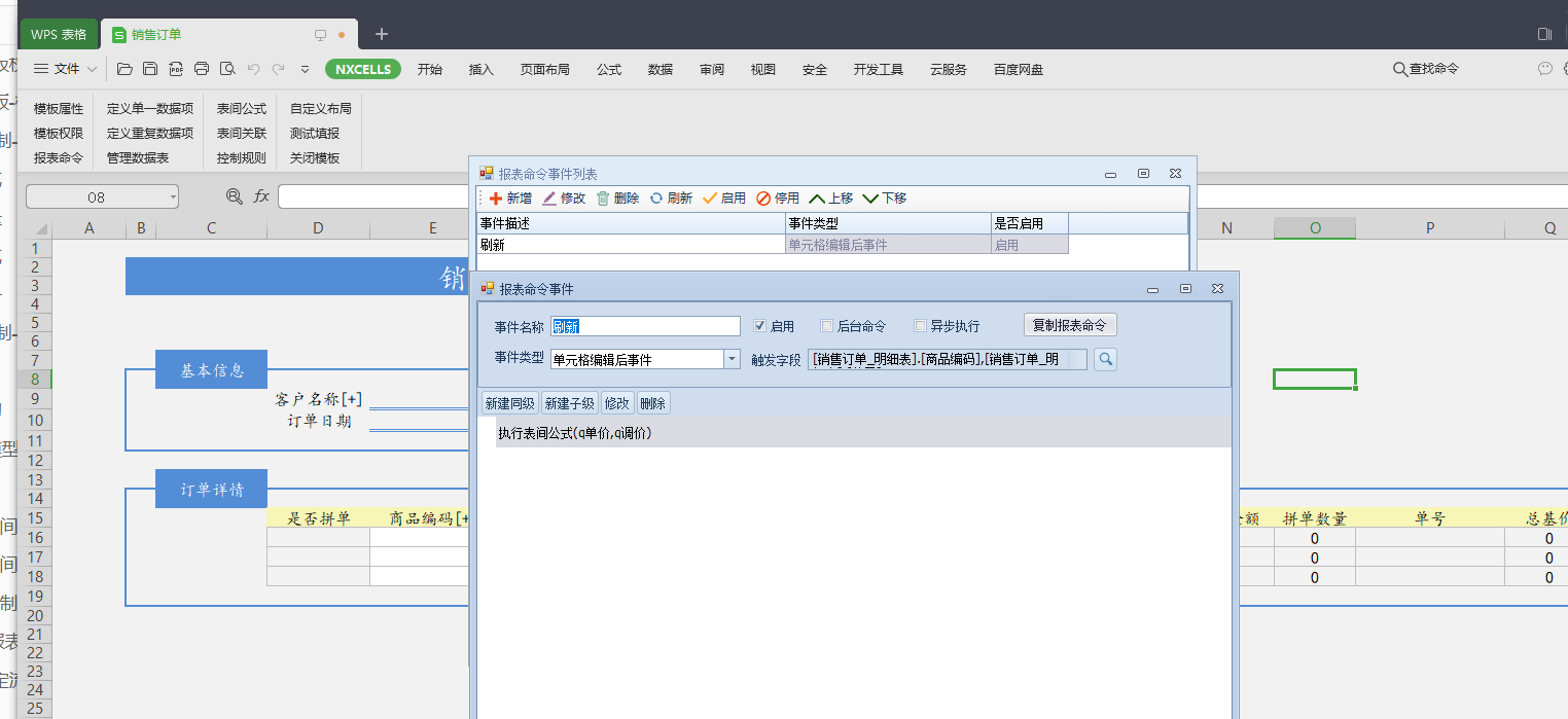 建立报表命令,当修改销售订单中的商品数量时,此时的单价需要跟着进行相应的变化