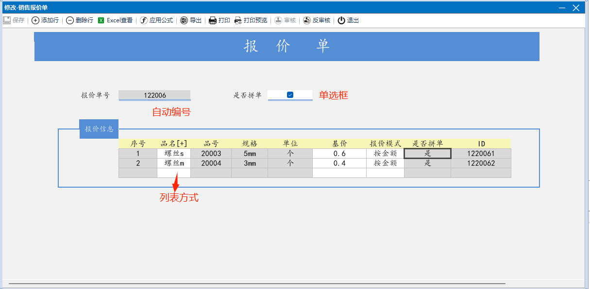 - 场景-前台表和自定义报表标识组合展示出入库情况