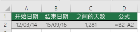 与计算时间一样,你可以加减日期。 以下是计算两个日期之间的天数十分常见的示例。 非常简单,就像这样:=B2-A2。 处理日期和时间的关键是使用结束日期/时间减去开始日期/时间。