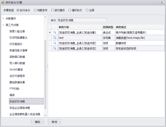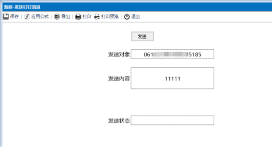 通过【报表命令】,执行发送消息,填写参数如下:
