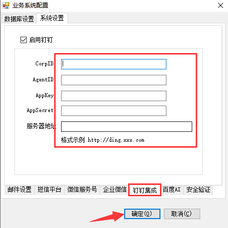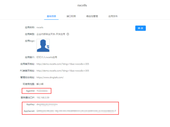 NxCells服务器配置,设置账套钉钉对接时需要用到以上三项。