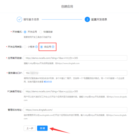 填写前面在钉钉管理后台提到的4个信息