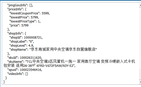 上述就是嵌套式解析,对内容进行一步步的解析。根据此种方法,对priceInfo进行解析得到价格