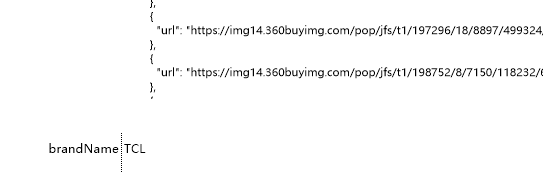 由上方提取公式提取可观看到,我们需要把data里面的json数据解析到对应的字段中去,由于json内容比较多,这边我们进行分步解析,从json内容我们可以看到brandName对应的是TCL,将其解析到对应字段上: