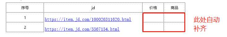 业务场景:通过京东的接口,实现在明细表中输入链接后自动将其链接的信息自动补充,如下图:(此处只展示价格和商品两个字段)