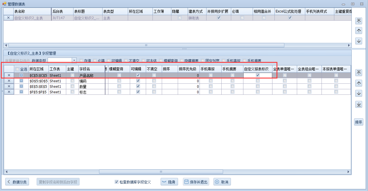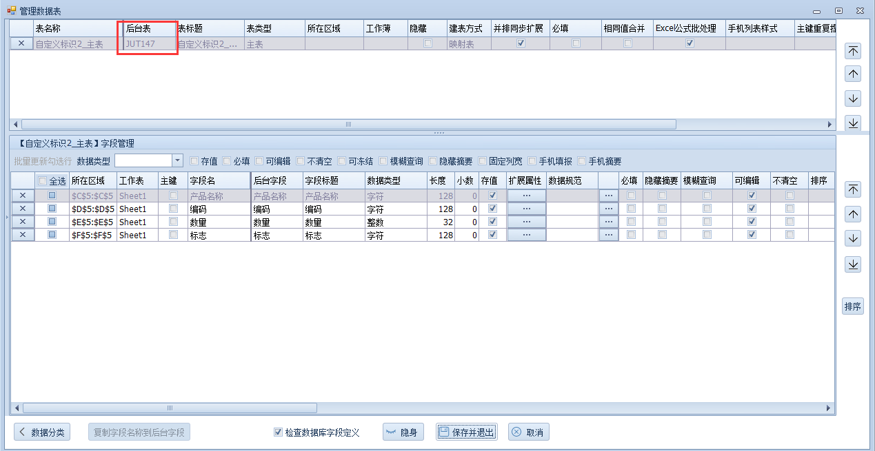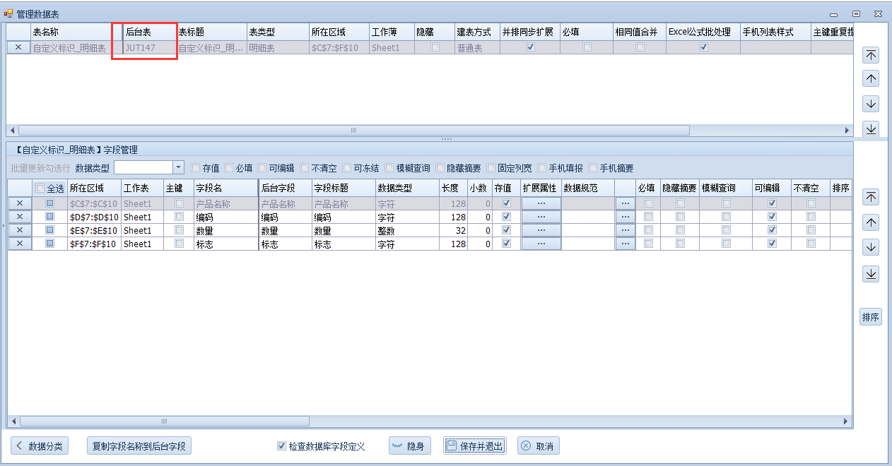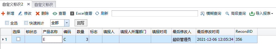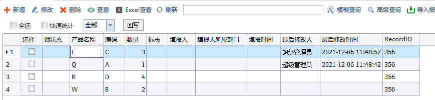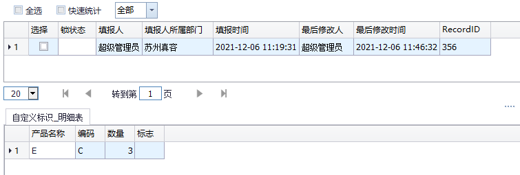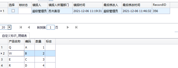 这是我们没有勾选自定义标识的,在客户端填写数据明细表也就是后台表,如下: