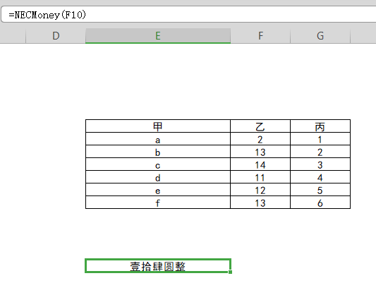 上一页 1.NECE(数值的单元格,位数,规则) 规则:45四舍五入;46四舍六入五成双2.NECMoney(数字单元格)数字转中文大写3.NEUSMoney(数字单元格)数字转英文描述 下一页作者:harry 创建时间:2021-12-29 17:45最后编辑:test 更新时间:2025-10-14 15:38
